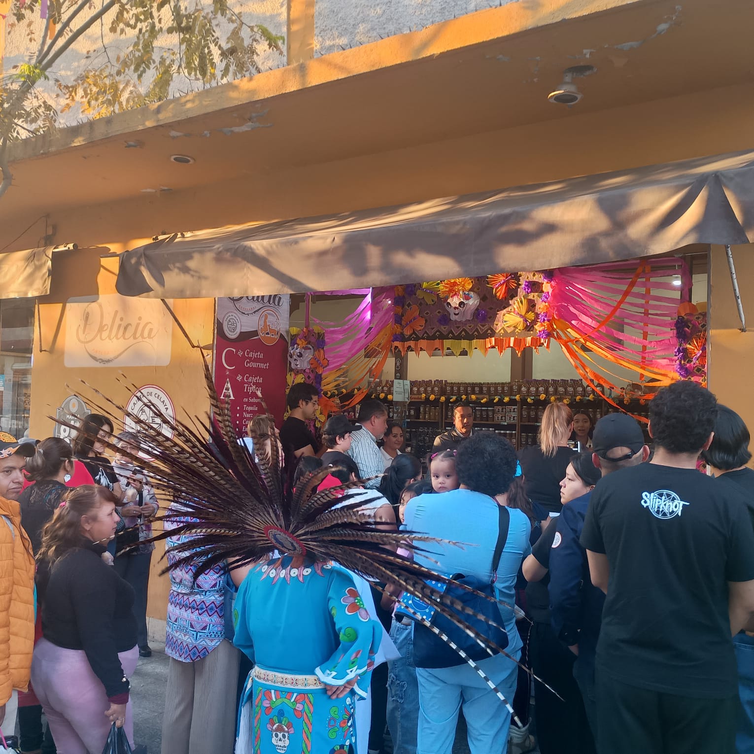 El recorrido, acompañado de música en vivo y danzantes, permitió a los participantes visitar 14 altares elaborados por los dueños de fábricas de cajeta y restaurantes, quienes además ofrecieron degustaciones de sus productos típicos, llenando el ambiente del inconfundible sabor que distingue a la ciudad más dulce del mundo.